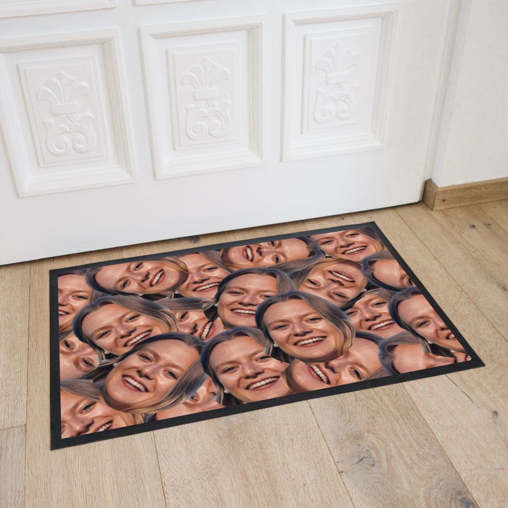 Als je jouw gezicht (of een ander) op de deurmat voor de toegangsdeur wilt zien - vergeet niet: schoenen worden geveegd! Je gezicht is niet te missen. Met de personaliseerbare multi-face deurmat, die je indrukwekkende portret zeker zal vermenigvuldigen tot een hele gezichtsorgie met naam. Dit ziet er niet alleen uit tussen iets grappig en spectaculair uit (en heeft ongetwijfeld een hoog cadeaupotentieel), maar verhoogt ook de kans dat ten minste één van de vele gezichten volledig vrij blijft van vuil. Om nog maar te zwijgen van de indruk die het achterlaat.