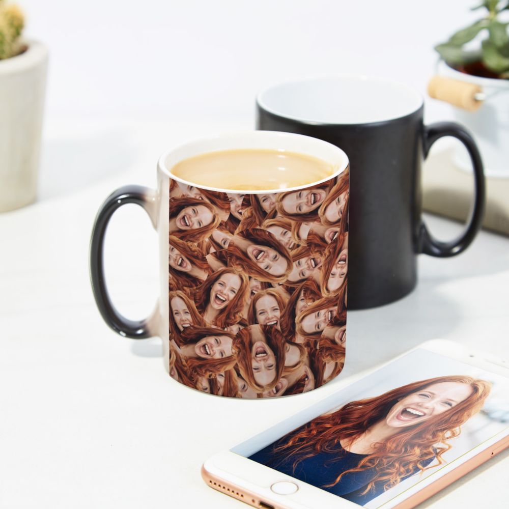 Naar onze bescheiden mening is er niets niet aanpasbaar. Neem bijvoorbeeld onze gepersonaliseerde mok met meerdere gezichten. Immers, wat is er sprekender dan het gezicht van van een persoon? Niets! Daarom besloten we het niet één keer, maar ontelbare keren op een mok af te drukken.